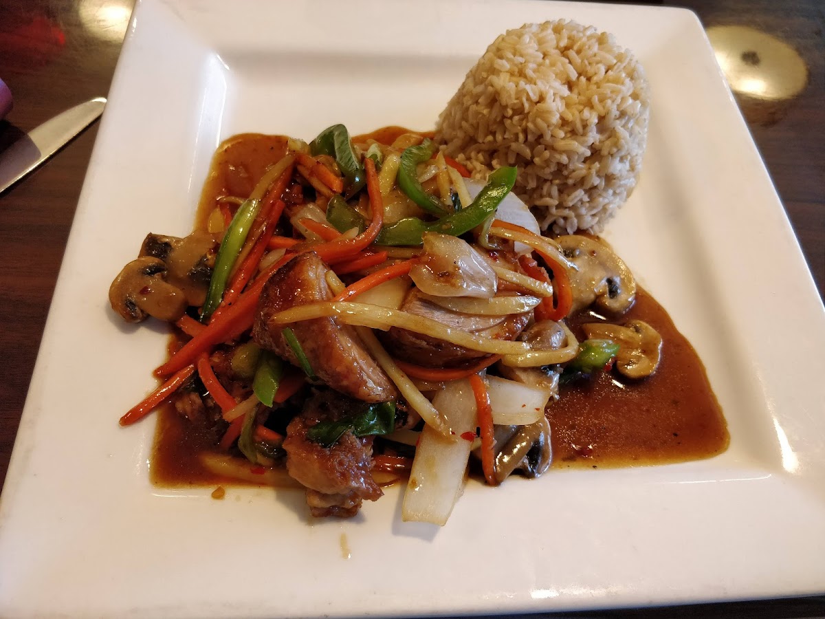 This was our first visit here, AND it will certainly not be our last. The food, the service, and the atmosphere were all a solid five stars (on a 1 to 5 chart). We were blown away at how good the food was. Service is prompt, and our server kept us updated on our orders. I ordered the Sweet & Sour Chicken and Rice along with a bowl of pineapple fried rice. I strongly recommend this dish. Everything was cooked to perfection. The blend of onions, pineapple, zuchinna, and rice paired well with the fried chicken. My wife had the Yakisoba. We got the Ginger toss salad as a starter. Everything was perfect. I can't remember when I enjoyed eating out this much. The entrees are large enough to share. To our server, Aleece, thank you so much for your service and for making this an enchanting dining experience.